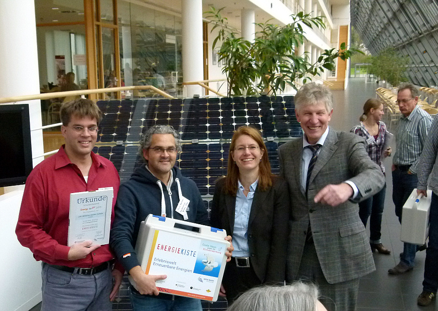Um spannende Experimente rund um den Klimawandel ging es beim landesweiten Wettbewerb "Energy to go". Jetzt stehen die Gewinner fest. Zu den 20 Schulen aus Nordrhein-Westfalen, die sich über einen Gewinn freuen dürfen, gehört auch eine Schule aus Essen. Ihre Vertreter nahmen gestern im Wissenschaftspark Gelsenkirchen die im dortigen EnergyLab entwickelte "Energiekiste" mit Anleitungen, Me&sz;geräten und Materialien für 27 Experimente entgegen. Dr. Alexandra Mette aus dem "Gesellschaftlichen Engagement" der NRW.BANK und Dr. Heinz-Peter Schmitz-Borchert, Geschäftsführer des Wissenschaftsparks Gelsenkirchen, hatten gemeinsam zu dem landesweiten Wettbewerb aufgerufen und übergaben die Experimentierkoffer persönlich.