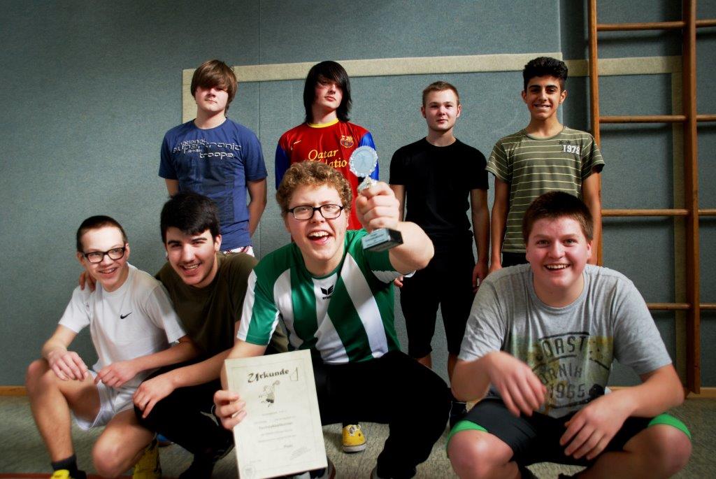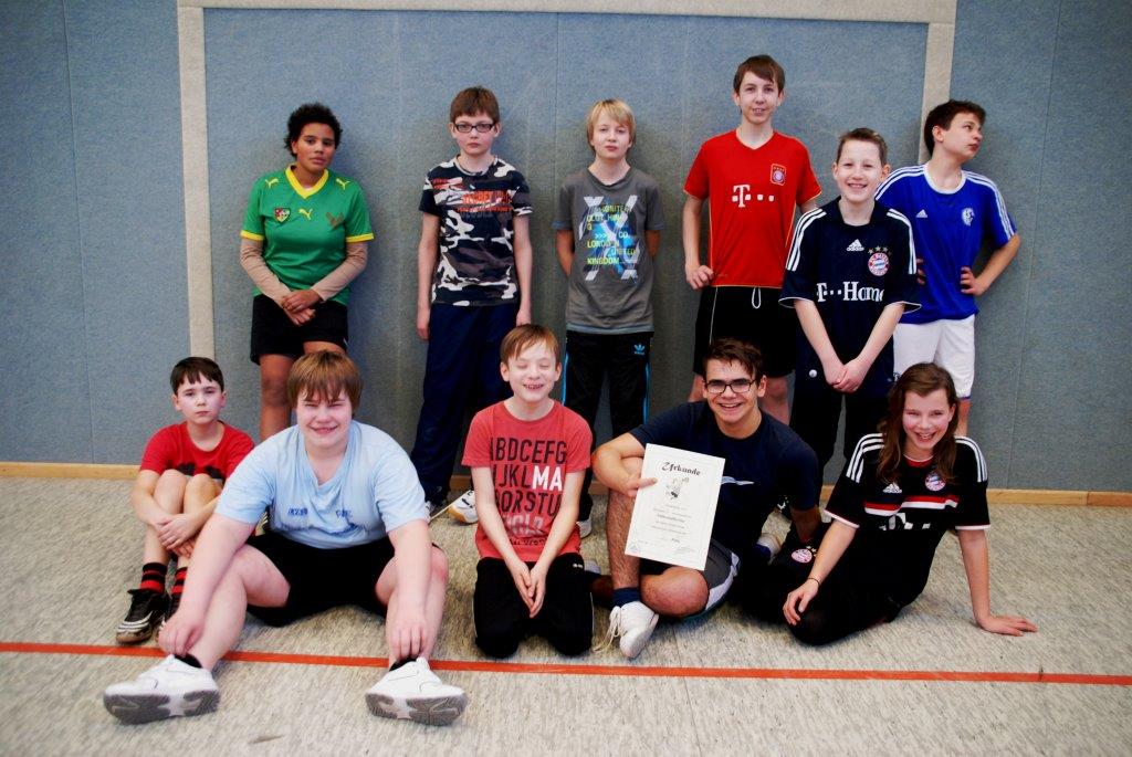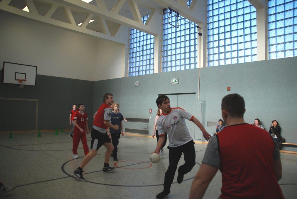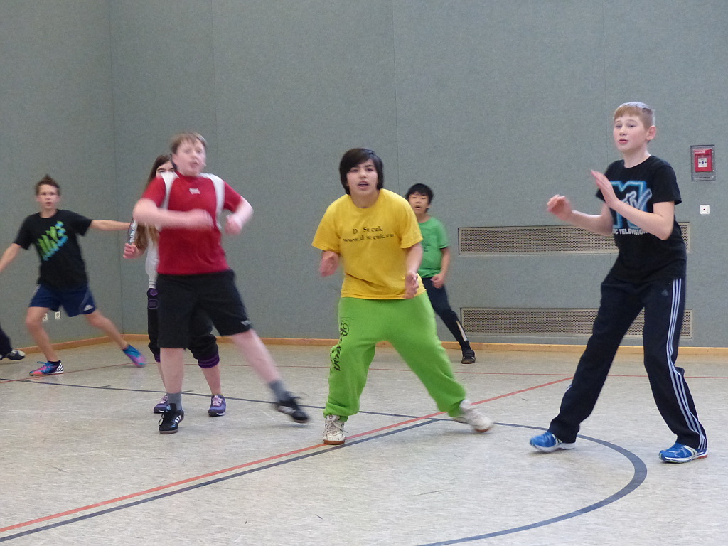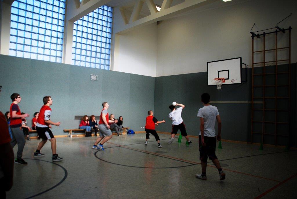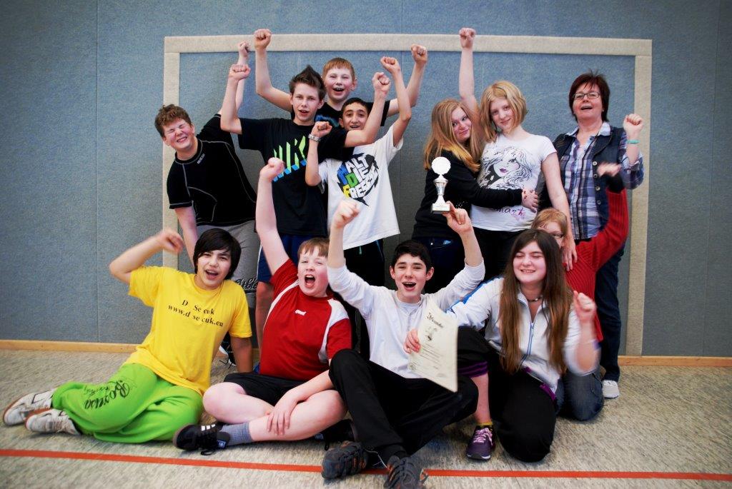 Mittwochs griffen dann die Stufen 5-7 ins Geschehen ein. Völkerball war Trumpf. Die Gruppenspiele gestalteten sich als heiß umkämpft. In Gruppe I setzten sich die beiden 6. Klassen gegen die "Fünfer" durch. In Gruppe II spielte sich ein echter "Thriller" ab. Nach den drei Vorrundenspielen hatten alle Mannschaften drei Punkte auf dem Konto. Somit musste die Endergebnisse über das Weiterkommen entscheiden. Mit +2 Punkten schaffte die Klasse 7a den Gruppensieg und die Klasse 7b kam mit +-0 Punkten ebenfalls ins Halbfinale. Die 7c hatte mit -2 Punkten knapp das Nachsehen. Die Halbfinalspiele waren hart umkämpft und auch das Finale wurde denkbar knapp mit 2:1 von der Klasse 7a für sich entschieden. Motivationstrainerin Frau Vogt hatte ihrer Truppe den Völkerballgeist eingehaucht und diese bedankte sich mit dem Siegespokal. Der Vorjahressieger, die Klasse 6a, erreichte unter den leicht glasigen Augen von Coach Buitinck die Silbermedaille. Im letzten Jahr noch chancenlos an letzter Stelle, in diesem Jahr auf dem Podest. Eine engagierte Klasse 7b eroberte die Bronzemedaille. Klassenlehrer Herr Hesse nach dem Sieg im Spiel um Platz 3: "Meine Klasse hat gekämpft bis zum Umfallen. Das erfüllt mich mit Stolz. Ich sehe Völkerball jetzt mit anderen Augen."