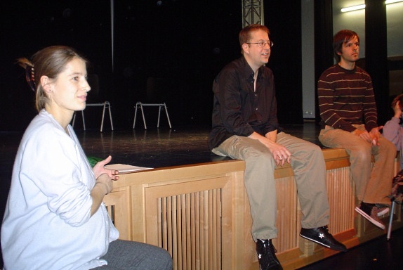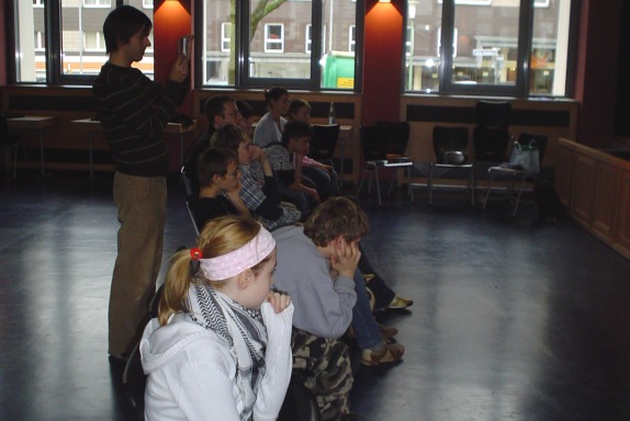 In dem Workshop wurden Aufwärmspiele mit der Klasse gemacht. Dann wurden kleine Szenen erarbeitet. Es gehörte viel Mut dazu, auf der großen Bühne spontan zu sprechen. Der Tag hat große Freude gemacht und Neugier auf mehr Theater geweckt. Alle wünschten sich am Schluss, eine solche Aktion zu wiederholen.