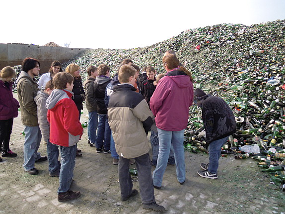 Besuch in der Glassortieranlage Am 15. März waren die Klassen5a und 5b im Rahmen des Chemieunterrichts in der Altglassortieranlage der Firma Rhenus AG. Ist es überhaupt nötig, das Glas zu sortieren, wenn überall farbige Container stehen?