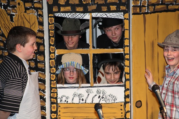 Die Klassen 5 bis 7 schauten amüsiert zu und waren beeindruckt und begeistert über die Sänger mit schauspielerischem Talent. Die Fotos beweisen, dass es auch den Sängern viel Spaß gemacht hat.
