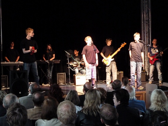 Schüler der Klasse 9c haben am Donnerstag, 7. Oktober 2010 gemeinsam mit Schülern unserer Partnerschule in Gliwice (Polen) ein Konzert in Dortmund gegeben. Dieses "Konzert der Sonderklasse" fand im Rahmen des Kongresses "Europa InTakt 2010" an der Technischen Universität statt. Es wurde geleitet von Werner Meuer, der mit uns und unseren Partnerschulen aus Polen und Finnland in unserem Comeniusprojekt die Rhythmen der Experimentelle Archaik erarbeitet hatte (mehr zu Comenius an der WKS hier). Nun gab es also ein Wiedersehen mit einigen Freunden aus Polen. Die Schüler waren zum ersten Mal in einer Universität zu Besuch. Sie wurden schon am Bahnhof von "Europa InTakt"-Studentinnen abgeholt und durften nach dem Konzert in der Uni-Mensa essen. Vor vielen Zuhörerinnen und Zuhörern gaben sie wieder ihr Bestes und bewiesen, dass man die Rhythmen nicht verlernt. Mehr über das europäische Musikfestival lesen sie hier.