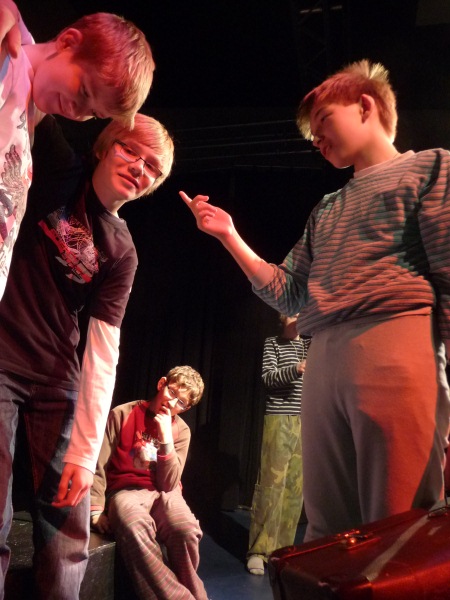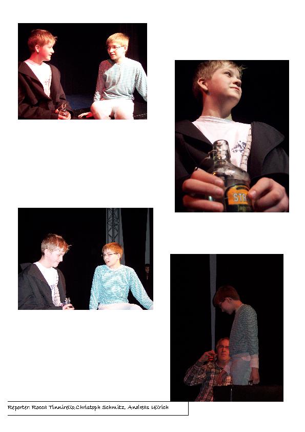 Vorhang auf! Die Klasse 5b, unter der Leitung von Herrn Hesse, hat ihr erstes Theaterstück mit vollem Erfolg auf die Bühne gebracht. Zu Beginn des Schuljahres hätte ein neutraler Beobachter wohl keinen Cent darauf verwettet, dass "Das Abenteuer von Träumelinchen" mit so einer großen Bühnenpräsenz der Schüler aufgeführt wird. Doch die fünfzig Zuschauer in der Aula der Wilhelm Körber Schule staunten nicht schlecht, welche Talente unter den Schülern der "Fünfer" waren. Sei es der betrunkene Mann auf der Bank, ein ideenreicher König, eine besorgte Königin, ein beinharter Drill-Instructor oder das wilde Träumelinchen. Letztes wird vom König von Schlummerland "eingefangen" um die bösen Träume seiner Tochter, der Prinzessin, zu fressen. In Schlummerland wird man nämlich nur berühmt, wenn man lange schlafen kann und keine schlechten Träume hat. Und die Darstellung der Albträume ließ die Zuschauer zittern. Düsteres Licht und dunkle Musik kündigten das Unheil an. Die Monster, welche hinter dem Vorhang erschienen, erschreckten die Prinzessin so sehr, dass diese schreiend aus dem Bett fiel. Doch am Ende war alles wieder gut. Das Traumfresserchen verspeiste die schleimigen Gestalten und die Zuschauer erlebten am Schluss noch einen guten Traum der Prinzessin. Mit viel Applaus bedankte sich das Publikum bei den Akteuren. Schon heute darf man sich freuen, wenn Herr Hesse, Intendant des WKS-Theaters, das nächste Theaterstück aufführt.