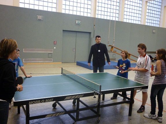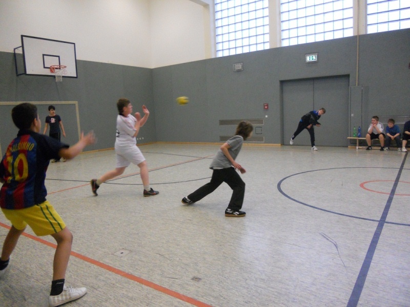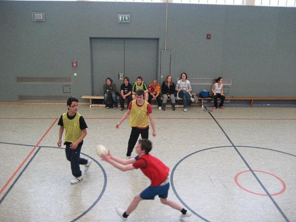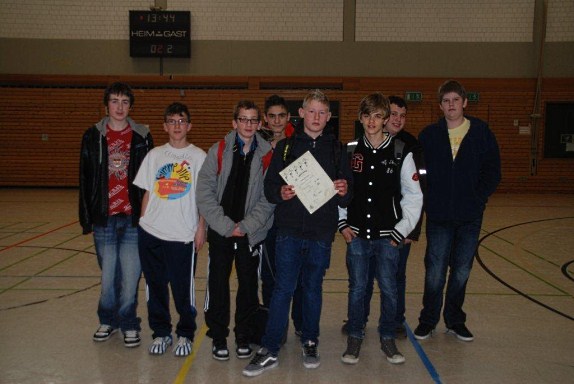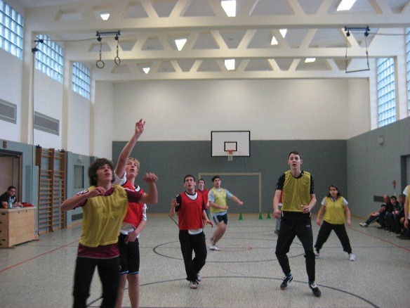 Genug der Theorie. Verbissen kämpften die 8er-10er Klassen in packenden Spielen um jeden einzelnen Tchouk (Punkt). "So schnelle Spiele hatten wir bei diesem Turnier noch nie", zeigte sich Organisator Herr Ghafouri zufrieden. "Trotz der knappen Ergebnisse und des Tempos blieb aber alles fair." Diese positive Begleiterscheinung vom Tchoukball, verwandelte den Tag in eine rundum gelungene Veranstaltung. Die "Großen" behielten am Ende allerdings wieder einmal die Oberhand. In den Finalspielen standen sich die 10a und die ehemalige 10b gegenüber, sowie die 9a der 10c. "Im Vergleich zu den letzten Jahren kann man wirklich sagen, dass sich die Spielqualität enorm gesteigert hat", hielt Hauptschiedsrichter Herr Buers fest. So setzten sich auch die "erfahreneren" Schüler im Finale durch. Die Klasse 10b ergatterte den 1. Platz. Herzlichen Glückwunsch! Der 2. Platz ging an die Klasse 9a. 3.Platz 10a und der 4. Platz gehört der 10c. Mit großer Vorfreude erwarten wir nun das nächste Turnier und können jetzt schon behaupten: Tchoukball ist an unserer Schule angekommen!