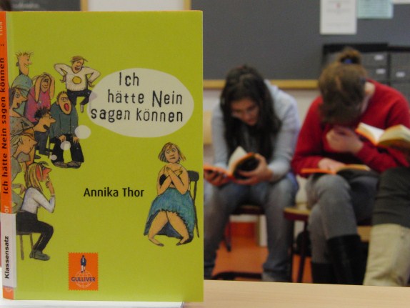 Zum vierten Mal hielten die Literatur- und Lesetage Einzug in der WKS. Die Klasse 5a folgte Emil und seinen Detektiven auf Schritt und Tritt, lern-te Detektivgegenstände kennen und fieberten der spannenden Geschich-te entgegen. Die 5b wurde von einem Toastbrot essenden Krokodil, namens "Krindelk-rax" begeistert. Sie lernten auch einen dünnbeinigen Jungen, mit Brillen-gläsern wie Untertassen kennen, welcher sich auf die Jagd nach dem Monster begab. "Hilfe, die Herdmanns kommen", hieß es in der Klasse 5c. In der mit Mat-ten gemütlich eingerichteten Klasse, wurde nicht nur gelesen, sondern auch Pfannkuchen verspeist und eine Szene aus dem Buch spielerisch dargestellt. Besonders mit Punkfrisuren beschäftigte sich die Klasse 6a. Inspiriert durch das Buch "Am Montag ist alles anders" sollen diese Frisuren Karne-val zum Einsatz kommen. Die 6b hatte sich "Die Insel der blauen Delfine" ausgesucht und war be-geistert von der vielen Action in ihrer Lektüre. Die Mädchen der Stufe 7 lasen "Ich hätte nein sagen können!" und hatten Spaß an den vielen "unschönen" Wörtern im Buch und vermissten die Jungen nicht. Die Klasse 7b war "Von Idioten umzingelt" und wurde von dieser Ge-schichte so gefesselt, dass alles andere nebensächlich wurde. In der 7c stimmte man sich mit einem Inselfrühstück auf "Robinson Cru-soe" ein. Kaktusfeigen und Karambole sorgten für gute Laune beim Lesen. "Frag mal Alice" begeisterte die Schüler der Klasse 8a und machte sogar aus den größten Lesemuffeln wahre Leseratten. "Abgerockt" wurde in der Klasse 8b. Dabei ging es nicht nur um Rockkon-zerte, sondern auch darum, Freundinnen zu haben. Die Stufe 9 beschäftigte sich mit einem sehr ernsten Thema. "Der Junge im gestreiften Pyjama" schildert die tragische Freundschaft eines jüdi-schen und eines deutschen Jungen in einem Konzentrationslager. "Romeo, oh Romeo!" - Die Stufe 10 wandelte auf klassischen Spuren und wurde je nach Verteilung der Leserollen zu Tränen gerührt. Doch auch die bildliche Sprache Shakespeares fand bei den Schülerinnen und Schülern großen Anklang.