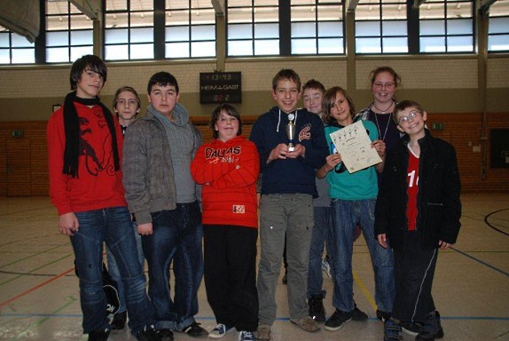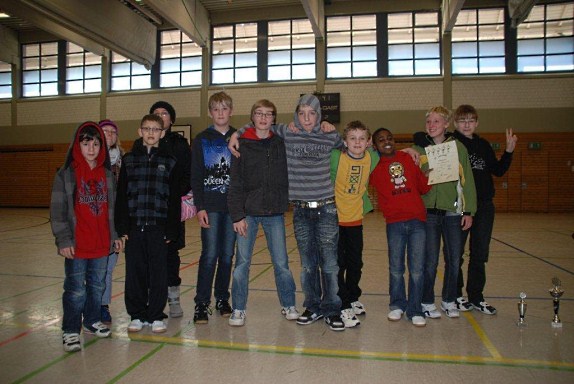 Der Februar 2012 begann für die Schülerinnen und Schüler der WKS mit einem Paukenschlag.Das alljährliche Hallenfußballturnier stand vor der Tür. So pilgerte die WKS mit Sack und Pack zur Turnhalle an der Prinz-Friedrich-Staße in Kupferdreh. Das erste Spiel hatte es gleich in sich. Die Klasse 10c fegte die Klasse 8a mit 7:0 vom frisch gebohnerten Hallenboden. Das Turnier war also eröffnet. In insgesamt 16 Vorrundenspielen zeigten die Toreros durchweg ansprechende Leistungen und unterhielten die lautstarken Fans auf den Rängen vorzüglich. Noch bevor es in die Vorausscheidungsspiele ging, kam es zum ersten Krimi. Die Schützlinge von Frau Kimmling (5c) mussten sich im 7m-Schießen mit den "Großen" messen. Am Ende behielten diese, vertreten durch die Klasse 6b, auch die Oberhand und zogen ins Halbfinale ein. Die Zwischenrunde war ebenfalls nichts für schwache Nerven. Das erste Halbfinale zwischen der 5b und der 5a musste im 7m-Schießen entschieden werden. Trainiert von Frau Vogt, die im letzten Jahr noch selbst als eisenharte Verteidigerin der Lehrermannschaft angehörte, siegte die Klasse 5a knapp mit 1:0. Aber auch die 10er-Klassen konnten in der regulären Spielzeit keine Einigung erzielen. Trainer- und Taktikfuchs Herr Ghafouri, der Udo Lattek der WKS, stellte seine Schützen überlegt auf und zog in die Endrunde ein. Bevor diese ausgetragen wurde, standen noch die Finalspiele der 5er und 6er Klassen auf dem Spielplan. Ohne viel Theater behielt die Klasse 5b, lautstark angefeuert durch ihren Trainer Herrn Hesse, mit 1:0 die Oberhand gegen die Klasse 6a. Das Finale zwischen der Klasse 6b und der Klasse 5a hätte spannender nicht sein können. Nach einem torlosen Unentschieden musste wiederum das Duell von der 7m-Linie entscheiden. Gefühlte 25 Schützen waren von Nöten, um eine Entscheidung herbeizuführen. Am Ende war es wohl der unbändige Glaube an den Sieg, welchen Teammanagerin Frau Seel im Religionsunterricht ihrer Klasse gepredigt hatte, der zum Titel verhalf. Herzlichen Glückwunsch! Die Finalrunde gestaltete sich dann eher entspannter. Die "alte" Klasse 10b funktionierte an diesem Tag wie ein Schweizer Uhrwerk. Ohne Gegentor stürmten die Mannen um Spielführer Yasin zum Turniersieg. Auch dazu einen herzlichen Glückwunsch! Shootingstar des Tages war die Klasse 8b, welche sich zwar in der Endrunde den 10er-Klassen geschlagen geben musste, sich aber in die Herzen der Fans spielte. Schlussendlich möchte sich das Organisationskomitee um Maitre d'football Ghafouri und Souschef Buers bei allen Personen bedanken, welche diesen Tag mal wieder zu einem absoluten Erlebnis gemacht haben. Seien es die Schiedsrichter, die Aufsichten, die vielen helfenden Hände vor und nach dem Turnier und alle, die jetzt nicht erwähnt wurden. Vielen Dank für eure Unterstützung! Wir freuen uns jetzt schon auf Zwanzig-13.