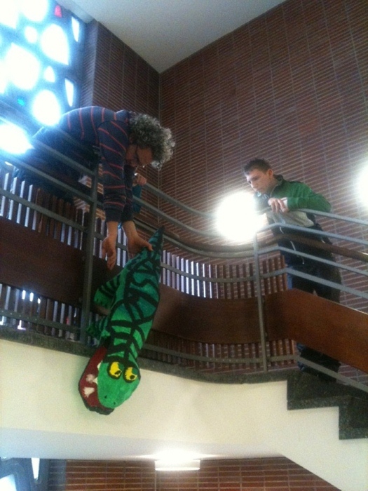 Die WKS freut sich über ihre neuen Mitbewohner im großen Treppenhaus. Unter der Leitung von Herrn Ghafouri schmückte die Klasse 10a den Aufgang mit ihren tierischen Figuren aus Pappmaché, welche im Kunstunterricht hergestellt wurden. Somit werden Lehrer, Schüler und Gäste ab sofort von Libelle, Krokodil und Käfer in Empfang genommen.