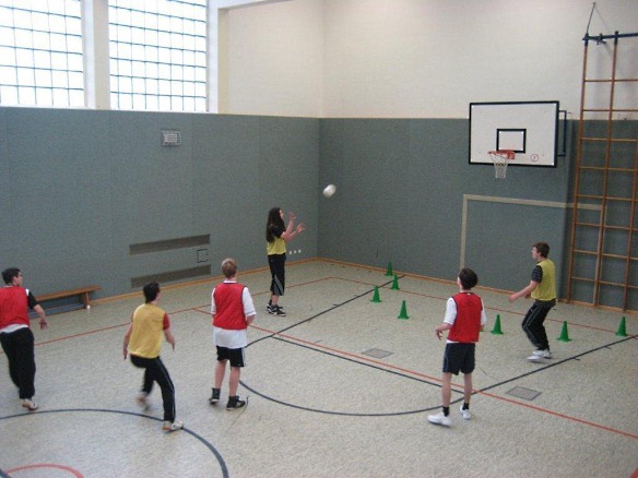"Es darf wieder gechoukt werden!" hieß es am 7. März in der Turnhalle der Franz-Arens-Str. 1. Tchoukball ist eine mittlerweile anerkannte Sportart an unserer Schule und sehr beliebt bei den Schülerinnen und Schülern. Das körperlose Spiel besticht durch Tempo und Präzision. Punkte können nämlich nur dann erzielt werden, wenn der Ball vom Basketballbrett auf den Boden springt. Verhindert werden kann dies natürlich von der gegnerischen Mannschaft, indem der Ball vor dem Bodenkontakt gefangen wird. Dies setzt eine hohe Hand-Auge-Koordination voraus.