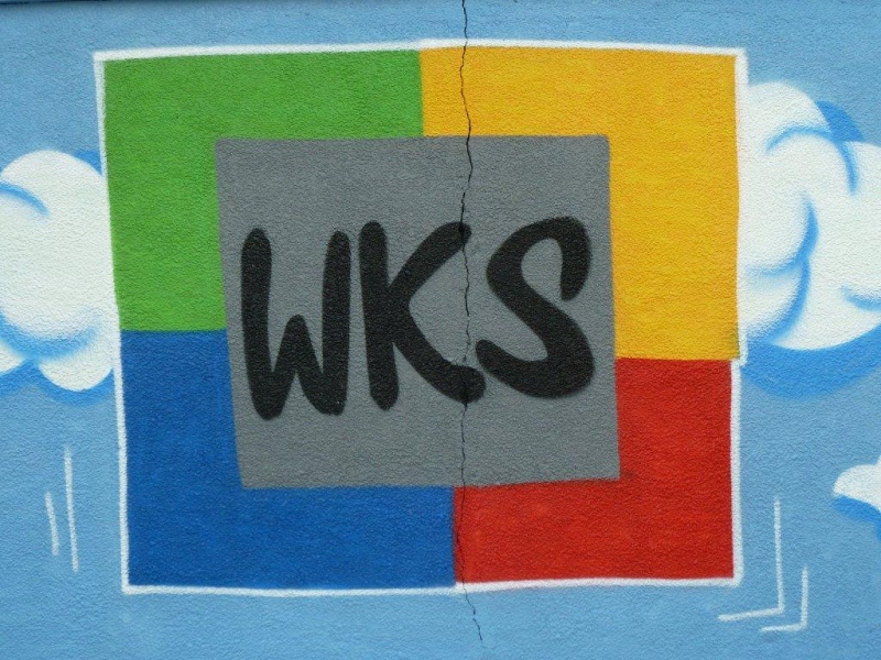 Für die jährliche Projektwoche haben wir uns diesmal etwas Besonderes einfallen lassen. Wir haben einige Sprayer in unserer Klasse - warum sollten wir also nicht mal unsere Schule mit einem Graffiti verschönern? Unser Plan war: bloß kein Billig-Graffiti, es soll richtig gut werden! Unsere Kunstlehrerin Frau Kaltenkirchen wusste Rat. Sie kennt einen Profi, nämlich den bekannten Gelsenkirchener Graffiti-Künstler Beni Veltum. Der sagte sofort zu, uns zu coachen. Als auch die Finanzierung geklärt war, konnte es losgehen. Sprayen wollten wir das Motto unseres Schulfestes, dass irgendwie aber auch das Motto unserer Schule überhaupt ist: "WKS in Bewegung". Ort: die ehrwürdige, aber mit den Jahren etwas unansehnlich gewordene Schulhofmauer unterhalb des Streetball-Platzes (Ecke Kleine Steubenstrasse / An der Donau).