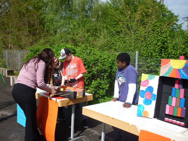 Aus Anlass des Schulfestes wurde auch die Mauergestaltung Kleine Steubenstraße/Auf der Donau präsentiert, dazu gibt es einen Extra-Bericht. Auch die WAZ (Westdeutsche Allgemeine Zeitung brachte einen Artikel). Ein Höhepunkt war natürlich wieder die Tombola mit 1000 Losen und 1000 Gewinnen, die von zahlreichen Sponsoren gestiftet wurden. Klar, dass auch für das leibliche Wohl gesorgt war: Das Café und der Grillstand waren immer gut besucht. Und das Wetter hat auch mitgespielt. Super!