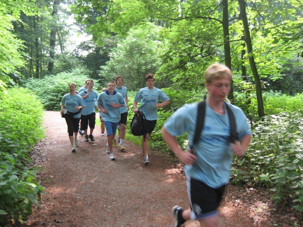 Am Donnerstag, den 31. Mai, machten sich ca. 60 Personen auf, um den Staffelstab der IntegraTour zur Johanniterschule in Duisburg zu bringen. Die Schüler der WKS wurden durch 34 Teilnehmer der Luisenschule, ein Gymnasium in Mülheim, unterstützt. Zwei Joggergruppen unter der Leitung von Frau Licht und Cheforganisator Herr Ghafouri, sowie eine Walking-Gruppe mit Herrn Buers machten sich auf den Weg. Nach einem Gruppenfoto und der Begrüßung durch Herrn Dr. Bahr fiel der Startschuss. Durch den Duisburger Wald führte uns der Weg, der zunächst von den Walkern betreten wurde. Die besagte Gruppe machte ihrem Namen jedoch keine Ehre. Denn die Walker wurden schon nach wenigen Minuten zu den Talkern. Schnell wurden Kontakte geknüpft und geplaudert. Daher merkte man gar nicht, wie schnell das Ziel in greifbarer Nähe war. Die Jogger mussten sich etwas größeren Herausforderungen stellen. Mit einem längeren Weg vor der Brust, starteten sie wenige Minuten nach den Walkern. Wurden diese schnell eingeholt, wunderte man sich kurz vor der Johanniterschule, dass die Sportler noch nicht angekommen waren. Dank Janek, Maik und Marcel aus der 10a, war dies auch nicht möglich. Die drei von der Tankstelle verloren nämlich im schönen Wald den Anschluss an ihre Gruppe. Nach einer groß angelegten Suchaktion, fand die Gruppe wieder zusammen und kam letztendlich doch noch am Ziel an. Mit großem Applaus wurden alle Beteiligten empfangen und konnten sich mit Brötchen und Wasser stärken. Alles in allem war es eine gelungene IntegraTour 2012 für die WKS. Vor allem konnten unter den Schülern und Lehrern gute Kontakte zur Luisenschule geknüpft werden. Wer möchte, kann sich auch auf der Homepage www.luisenschule-mh.de informieren.