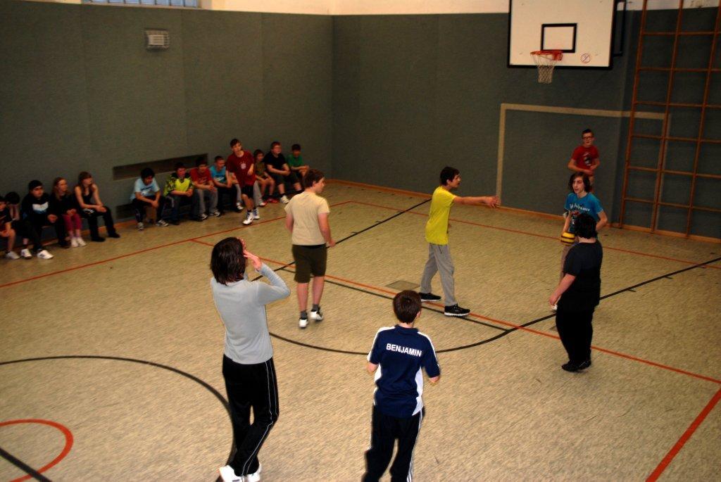 Im 2. Halbfinale trafen dann die Klasse 10b von Herrn Plass auf die 8b von Herrn Ghafouri. In diesem Spiel gab es lange Zeit ein spannendes Kopf an Kopf rennen. Die beiden Klassen waren taktisch gut aufgestellt und da sie beide von Herrn Ghafouri trainiert wurden, war es ein Spiel auf hohem Niveau. Ganz knapp zog dann allerdings überraschend die Klasse 8b ins Finale ein und gewann das Spiel mit 21:18 Punkten.