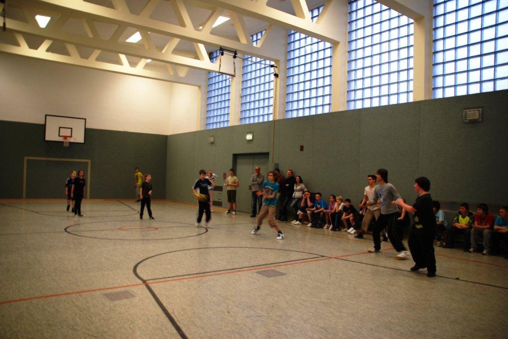 Heute gab es zum 4. Mal das Tschoukballturnier der Wilhelm-Körber-Schule. Wie auch in den Jahren zuvor lieferten sich die Klassen 8 bis 10 viele spannende und hart umkämpfte Spiele ab. Nach 9 Vorrundenspielen trafen im 1. Halbfinale die Klassen 10a und 9b aufeinander. In einem Klassefight trennten sie sich mit 21:16, so dass die Klasse 10a von Frau Middendorp ins Finale einzog und die 9b von Frau Zahner um den 3. Platz spielte.