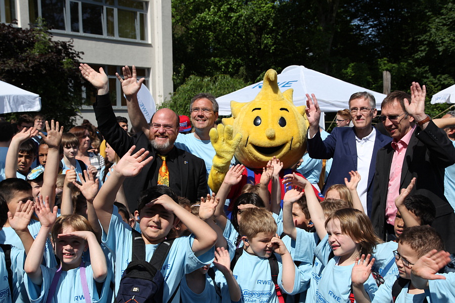 Bei strahlendem Wetter wurde geklatscht, gesungen und gespielt. Die RWE schenkten uns drei Fahrradergometer, die sofort in Betrieb genommen wurden. Vielen Dank dafür. Auch für das leibliche Wohl war bestens gesorgt: Obst, belegte Brötchen, Wasser und Apfelschorle. Lecker! Wir waren gerne Gastgeber und sind uns einig: Das Staffelfest an der WKS war ein Höhepunkt im Schuljahr 2012/13.