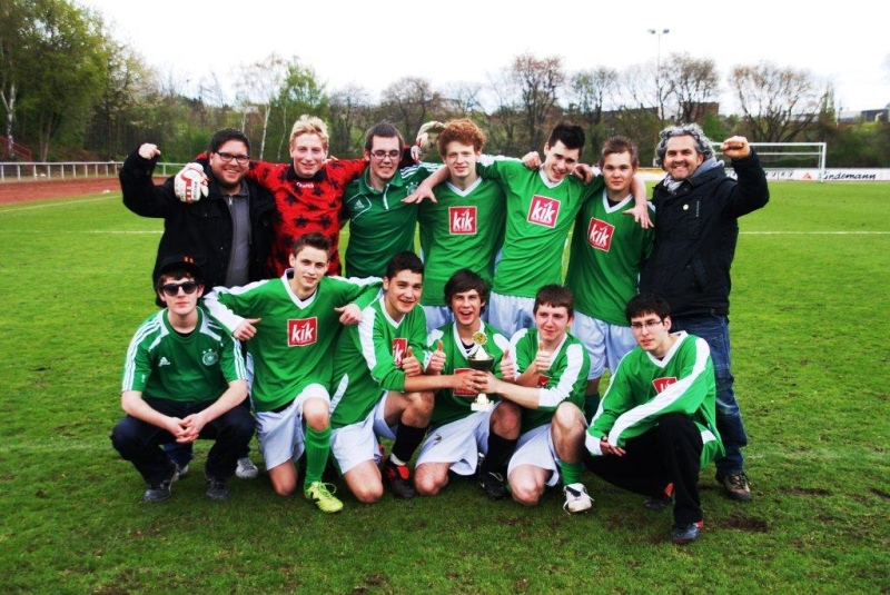 Die Schulmannschaft der Wilhelm Körber Schule hat die Meisterschaft der Förderschulen für Sprache aus NRW gewonnen. In einem packenden Turnier fiel die Entscheidung erst im Entscheidungsspiel um Platz 1. Zuvor schloss man die Gruppenphase punktgleich mit der Raoul-Wallenberg-Schule aus Dorsten ab. Dort erreichte man im ersten Spiel gegen die Hasselbrink-Schule aus Bochum nur ein 1:1. Das Führungstor von Yasin reichte nicht, da die Abwehr eine kurze Frühstückspause einlegte und in der letzten Sekunde des Spiels noch den Ausgleich kassierte. Dann ging es gegen Dorsten. Der Vorjahressieger verlangte den Mannen um das Trainergespann Buers/Ghafouri alles ab. Am Ende stand ein leistungsgerechtes Unentschieden. Martin Luther King sagte damals, er habe einen Traum. Sicherlich war dieser aber nicht, dass die gleichnamige Schule aus Münster mit 0:5 gegen die WKS untergeht. Zwei Tore von Marco und Kevin, sowie ein Treffer von Yasin standen am Ende auf dem Zettel. Im letzten Spiel war die Michael Ende Schule aus Olpe dankbar, dass es keine unendliche Geschichte gab, sondern beim Stand von 3:0 aus Sicht der WKS abgepfiffen wurde. Patrick leitete durch einen schönen Schlenzer aus halbrechter Position den Sieg ein. Das Finale gegen die Raoul-Wallenberg-Schule aus Dorsten war dann nichts mehr für schwache Nerven. Nochmals wurde die Taktik umgestellt und ging voll auf. Die Trainerfüchse stellten André auf die Füße des Captains der Dorstener und wurden dafür belohnt. Die Offensive der Dorstener war lahmgelegt und Yasin machte wieder einmal deutlich, wie wichtig er für die Mannschaft ist. Sein Führungstor, welches gleichzeitig der Endstand war, versetzte die mitgereisten Fans der Klassen 10 in einen Freudentaumel. Nach 2010 konnte man sich also wieder den Pokal des Landschaftsverbands Westfalen-Lippe und Rheinland sichern. Am Ende bleibt nur eins zu sagen: "So sehen Sieger aus!"